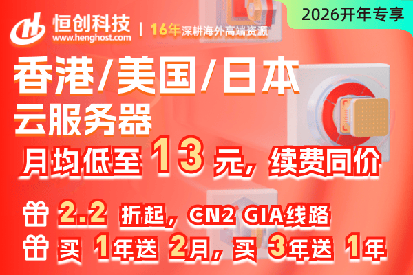 核心定位:2026年恒创入门级低价海外云服务器,主打“低成本、轻负载、免备案”,适配个人站长、小型博客、海外自媒体初期运营等轻量业务,无需备案,快速上线,性价比拉满。